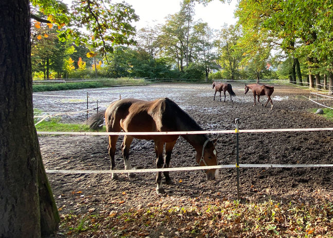 Moderne Stallungen, das vielseitige und weitläufige Außengelände mit zwei Reithallen, Tunierspringplatz, Paddockanlagen, Führanlage und die anliegenden Weideparzellen bieten optimale Bedingungen für eine artgerechte und bestmögliche Haltung unserer Pferde sowie für erstklassige Trainingsbedingungen. Unser Mehl-Mühlens-Geländereitpark bietet beste Trainingsvoraussetzungen für das Reiten im Gelände und das Vielseitigkeitsreiten.